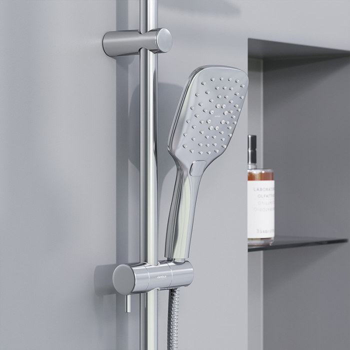 Получите незабываемое наслаждение от приятия душа с новой душевой системой серии Eclipse. Солидные и точные формы, ювелирный блеск с защитным покрытием High Gloss. В комплекте идет ручной душ с новым рисунком форсунок, который распределяет равномерно поток воды, и увеличенный тропический душ. Удлиненная штанга позволит установить душ на нужной для вас высоте. Для полного расслабления душевая система имеет три режима ручного душа. Премиальные технологии еще не были никогда настолько доступными.