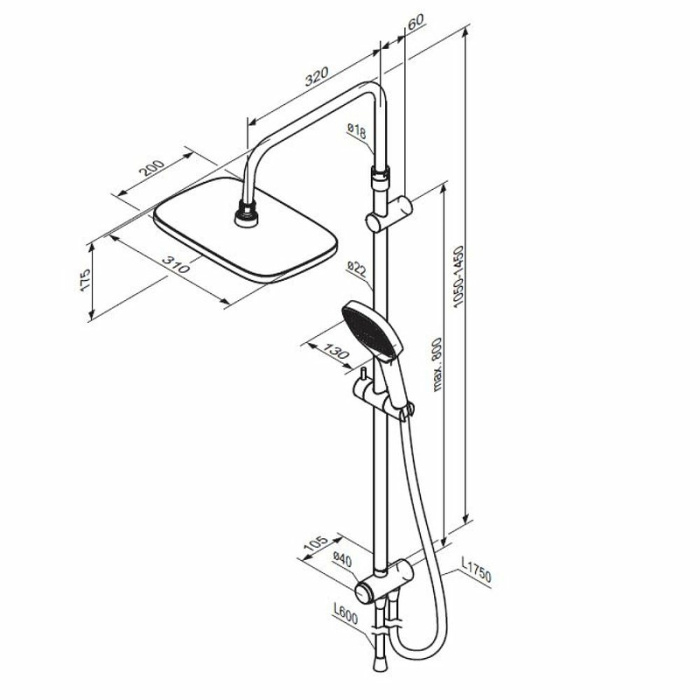 Душевая система Damixa Merkur 940000300 Черная матовая
