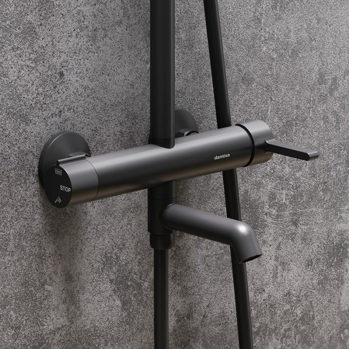 Душевые системы из коллекции Scandinavian Pure – воплощение минималистичного датского дизайна и солидного скандинавского качества. Элегантные обтекаемые формы и матовое черное покрытие станут настоящим украшением современной ванной комнаты. Благодаря телескопической штанге с диапазоном регулировки 400 мм ежедневные процедуры будут одинаково комфортны для людей любого роста. Душевая система дополнена керамическим картриджем со звукоизоляционной сеткой, что значительно снижает уровень шума, а также обеспечивает эффективность и быстроту смешивания горячей воды с холодной. Увеличенный диаметр верхнего душа с возможностью регулировки угла наклона и ручная лейка в трендовой форме стика подарят вам полный спектр ощущений - помогут взбодриться утром и расслабится вечером. Переключайте потоки воды между ручной и тропической лейками плавным поворотом левой ручки смесителя, а между ручной лейкой и изливом - поворотом излива. Инновационное PVD-покрытие гарантирует чрезвычайную прочность душевой системы.