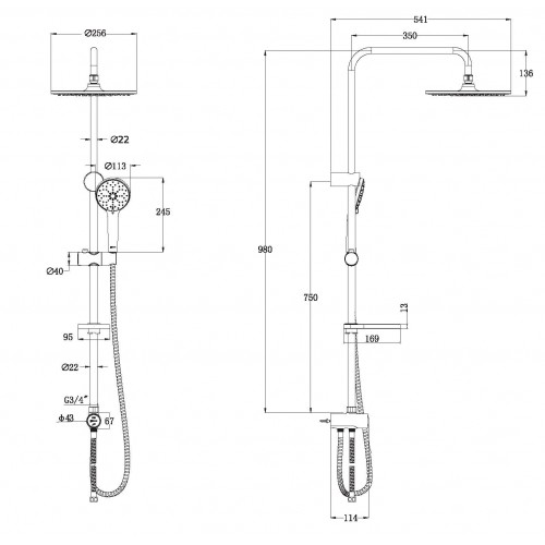 Верхняя душевая лейка "Тропический душ" Ø256 мм