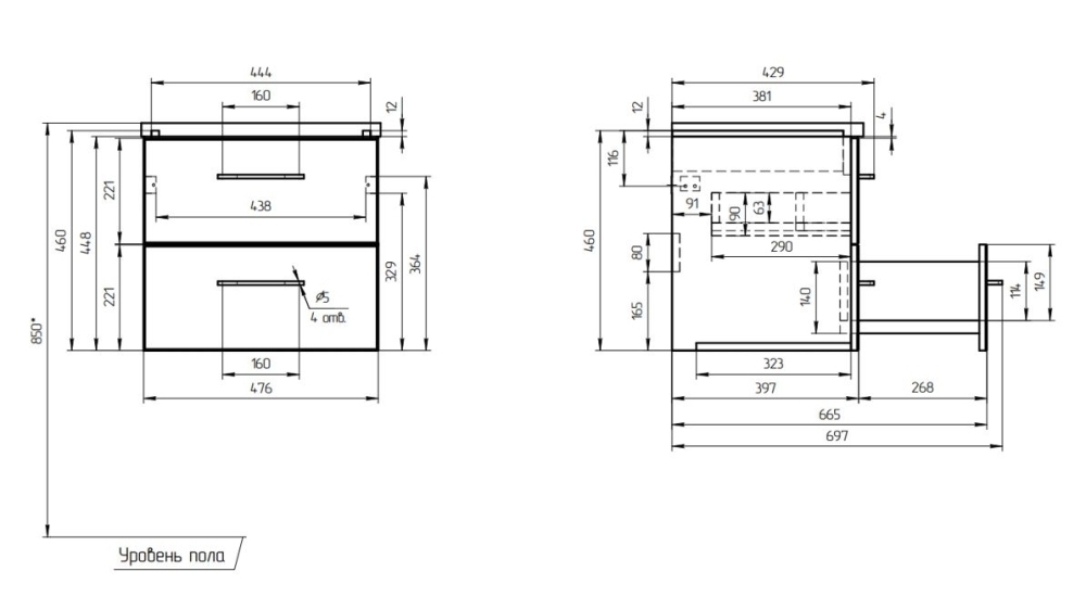 Тумба подвесная с раковиной Cersanit "LARA 50"