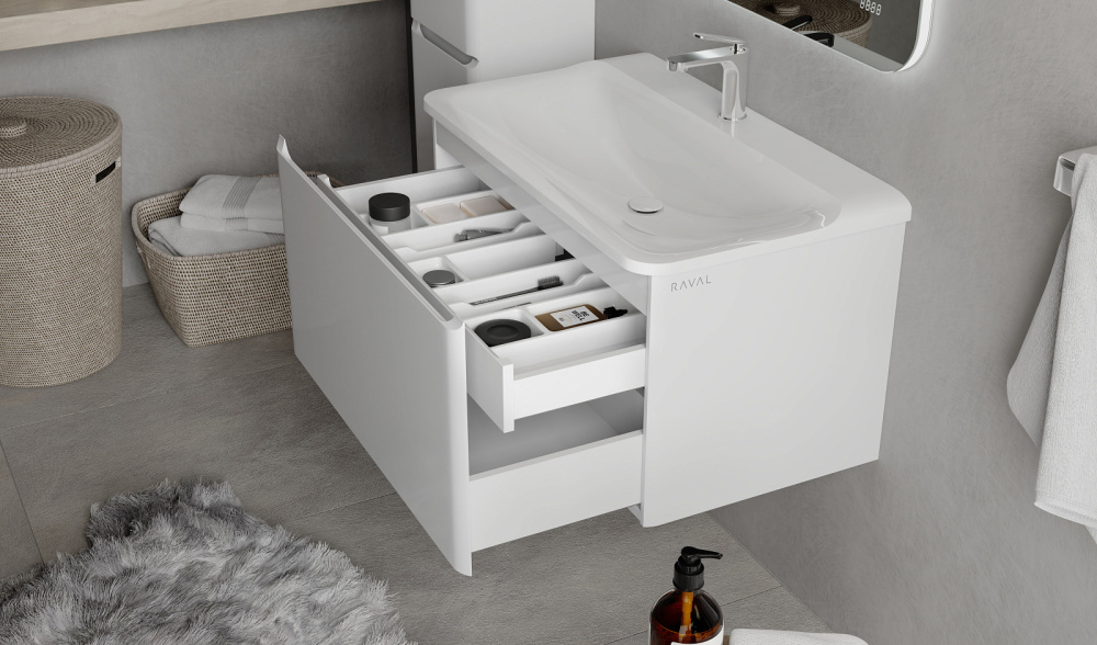Коллекция Welto разработана в сдержанном современном стиле. Компактный выдвижной ящик освобождает пространство под тумбой для дополнительного использования. Встроенный органайзер помогает удобно разместить все мелкие предметы и поддерживать порядок в ванной комнате. Плавное скругление углов и интегрированные ручки делают комплект мебели максимально безопасным. Полноразмерная вкладная раковина авторского дизайна с пологими бортами проста в уходе. Корпуса и фасады пенала и тумбы изготовлены из МДФ и покрыты глянцевой пленкой ПВХ.