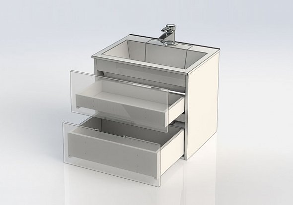 Раковина «Фортуна» имеет уникальную конструкцию слива: вместо привычного расположения по центру, он находится в скрытом отсеке под съемной крышкой. Смещение слива и сифона к стене, в сторону канализационного отвода, избавляет от необходимости менять устройство верхнего ящика тумбы и делать в нем выемку. Теперь он свободно передвигается под раковиной и имеет большую вместимость.