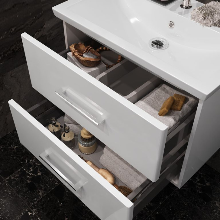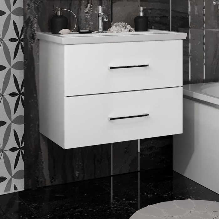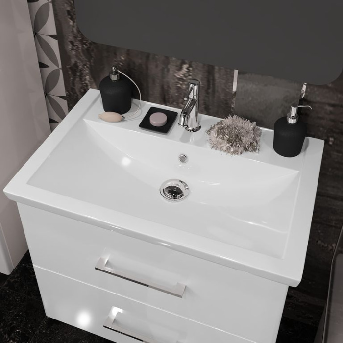 Коллекция подвесной мебели «Арабеско» строгая и лаконичная прямоугольная модель с изящной ручкой, подвесная тумба с двумя выдвижными ящиками с системой «плавного закрывания» и глубокой керамической раковиной. В коллекцию также входит подвесной пенал с двумя выдвижными ящиками и дверцей. Коллекция «Арабеско» предлагается в двух вариантах размеров и с зеркалом.