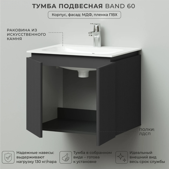 Тумба с раковиной подвесная Итана BAND 60 606x477x511