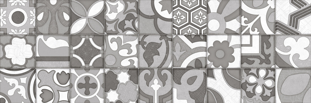 Матовая поверхность имеет рисунок под мозаику, с орнаментом, геометрический узор. Эта плитка применяется для облицовки стен внутренних помещений: ванной, туалета.