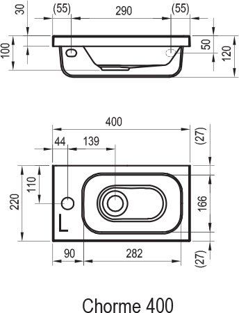 Умывальник "RAVAK" Chrome 400 правый с отверстиями