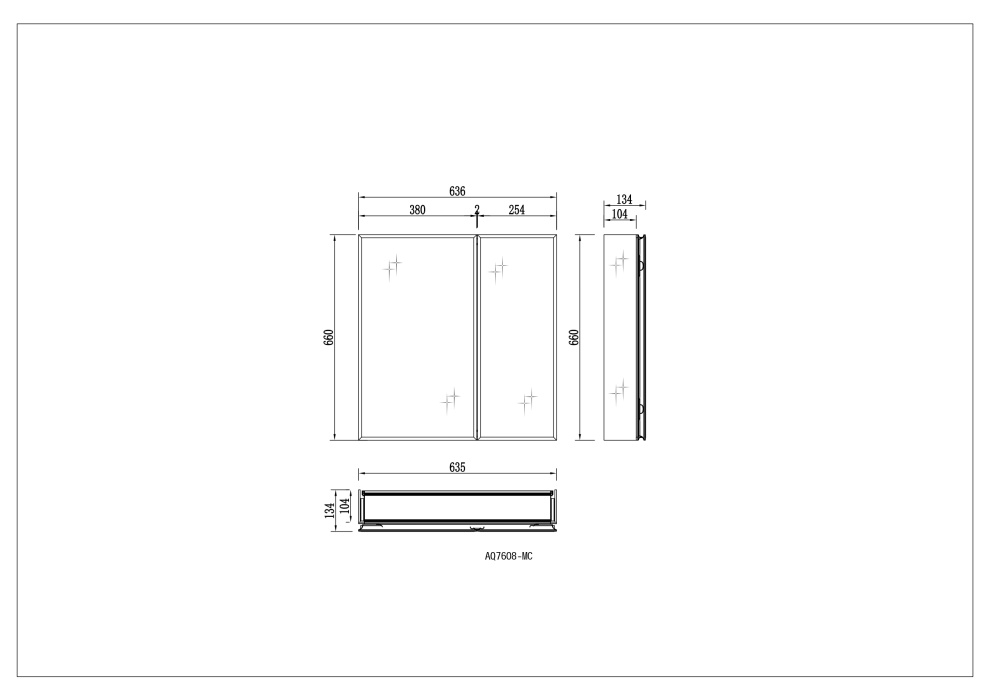 Алюминиевый зеркальный шкаф без подсветки 636Х660Х134