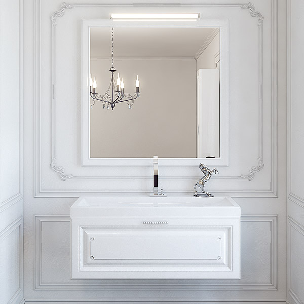 Фасадные и боковые части мебели изготовлены из высококачественного испанского МДФ концерна FINSA. Модель имеет выдвижной ящик полного выдвижения с системой плавного закрывания австрийской фирмы «BLUM» и разделением внутреннего пространства. Модель выпускается в размерах 80 и 100 см. Модель дополняется универсальным (правым/левым) подвесным пеналом 35 см, универсальным напольным пеналом 45 см, напольной тумбой с ящиком полного выдвижения плавного закрывания австрийской фирмы «BLUM» и разделением внутреннего пространства, стеклянной полкой. Внутренняя расцветка — Eolo.