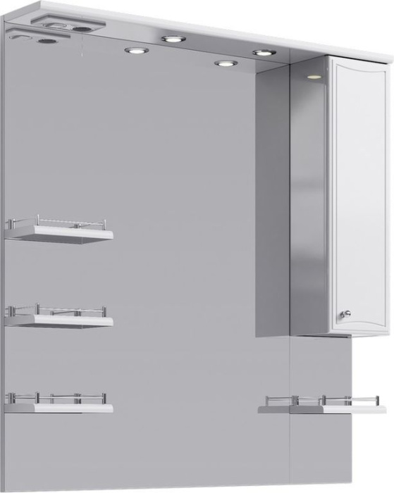 Зеркало оснащено: -светодиодной подсветкой сверху -блоком выключатель/розетка