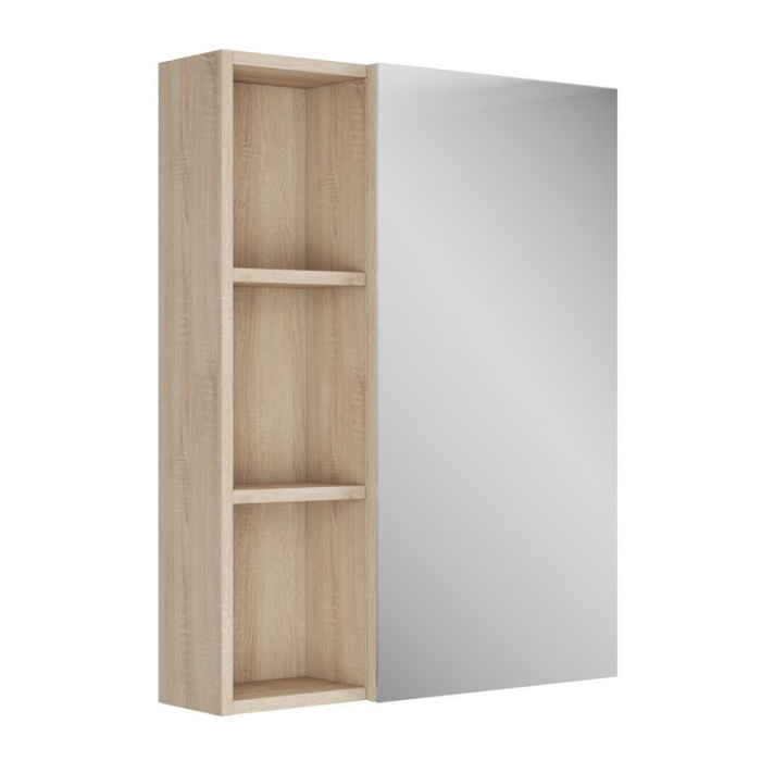 Материал корпуса : Влагостойкое ЛДСП. МДФ, зеркало. Покрытие корпуса : Покрытие фасада : ПВХ. Цвет дуб сонома. Система хранения с полками/ с дверками. Механизм доводчика.