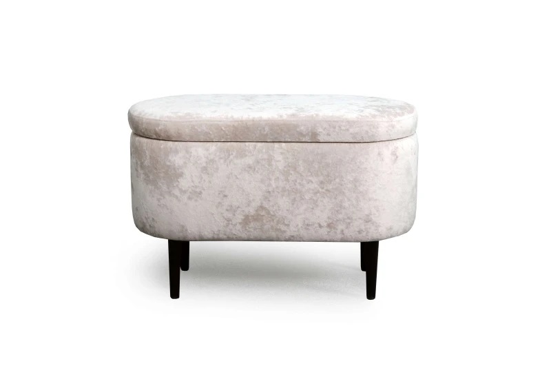 Мягкая обивка в ткани велюр с краш-эффектом добавляет приятный объем и украшает изделие. Опоры выполнены из массива берёзы и имеют защитные войлочные наклейки. Банкетка хороша не только в гостиной, но и в спальне, на кухне и в детской комнате. Максимальная нагрузка 100 кг.