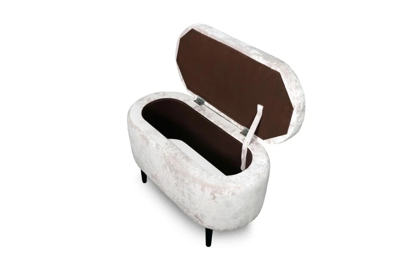 Банкетка также способна заменить журнальный или кофейный столик - на ее ровной поверхности можно без опасений разместить поднос с напитками, журналы, зарядные устройства и телефоны, а вместительная ниша станет прекрасным местом для хранения вещей.