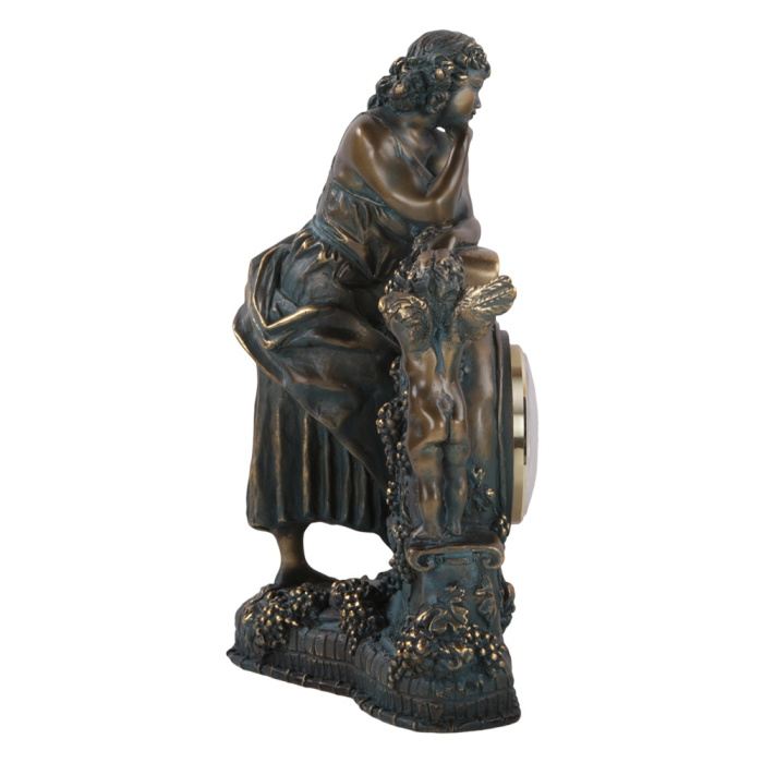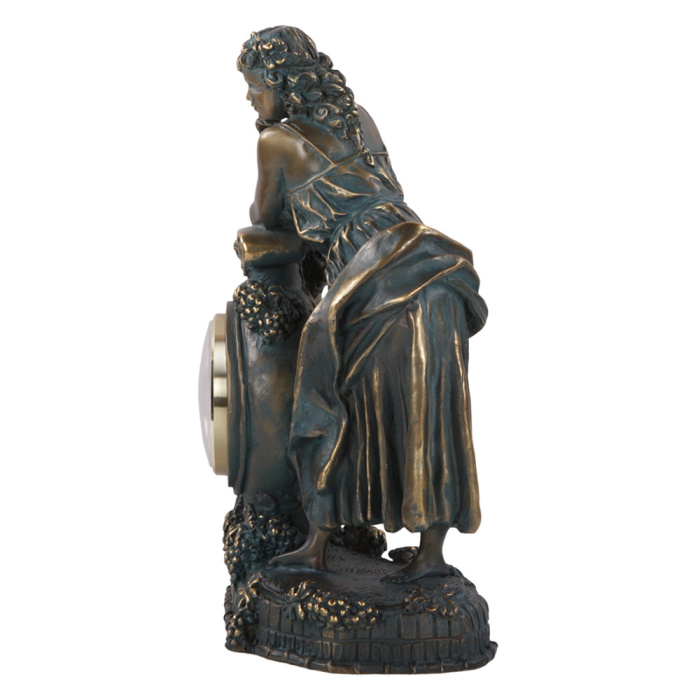 Часы производятся из высококачественного коелгинского мрамора, который привозится в виде мраморной крошки, затем отливается вручную, подвергается дополнительной обработке — патинированию и золочению поталью. В композицию вписаны круглые часы немецкого производства с кварцевым механизмом. Часы работают от одной батарейки маркировки GP 910A – BC, RL – 1, напряжение 1.5В (входит в комплект). Вес изделия, 4 кг.