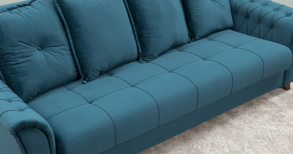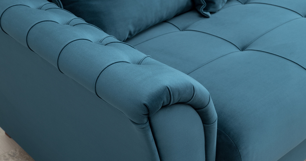 Декоративная отстрочка, защипы и утяжки на сиденье; защипы и утяжки с пуговицами на подлокотниках; утяжки с пуговицами на приспинных подушках