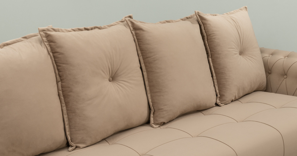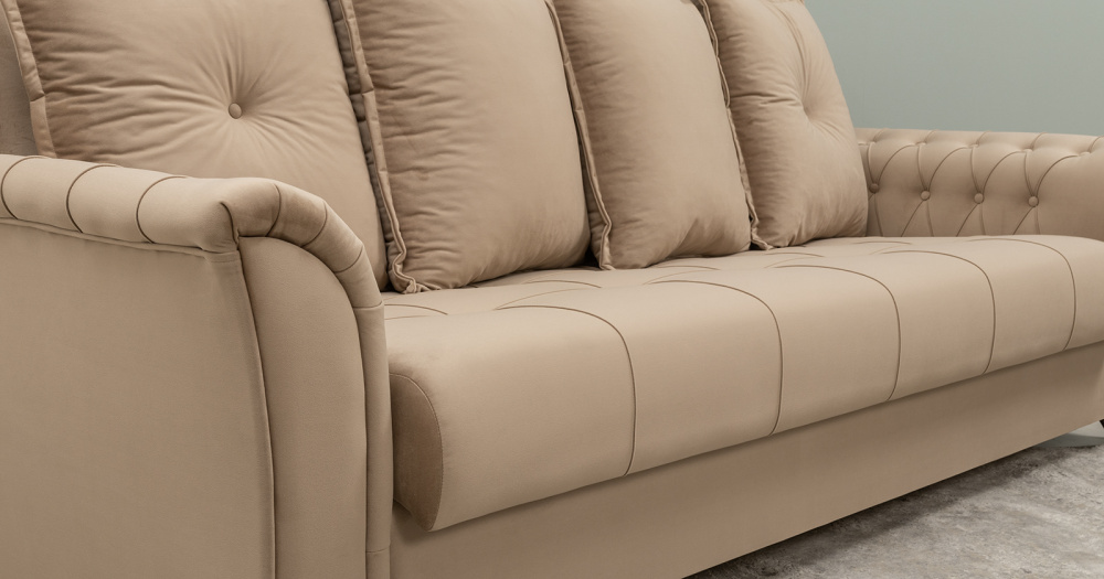 Декоративная отстрочка, защипы и утяжки на сиденье; защипы и утяжки с пуговицами на подлокотниках; утяжки с пуговицами на приспинных подушках