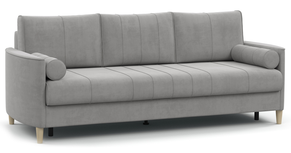 Комплект состоит из прямого и углового диванов, кресла для отдыха и пуфа.