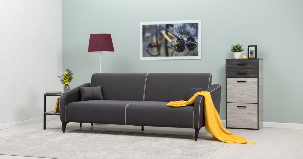 Стильный компактный диван-книжка для современных интерьеров. Дополнит гостиную, сэкономит место в гостевой, сделает уютным и функциональным кабинет или офис.