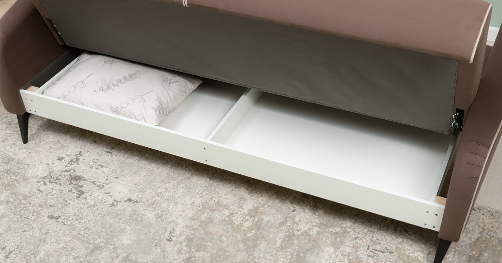 Стильный компактный диван-книжка для современных интерьеров. Дополнит гостиную, сэкономит место в гостевой, сделает уютным и функциональным кабинет или офис.