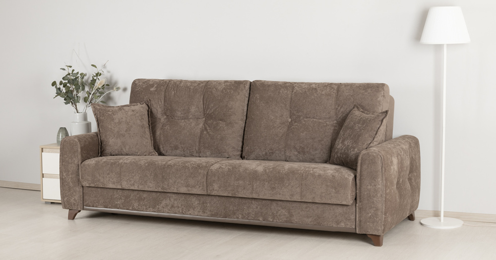 Плимут - современный диван с комфортной посадкой. Может быть дополнен креслом Плимут. Удачно впишется в любой современный интерьер благодаря универсальному дизайну и трендовым цветам обивки. При разложении не требует отодвигания от стены. Обеспечит полноценным ровным спальным местом двух человек.