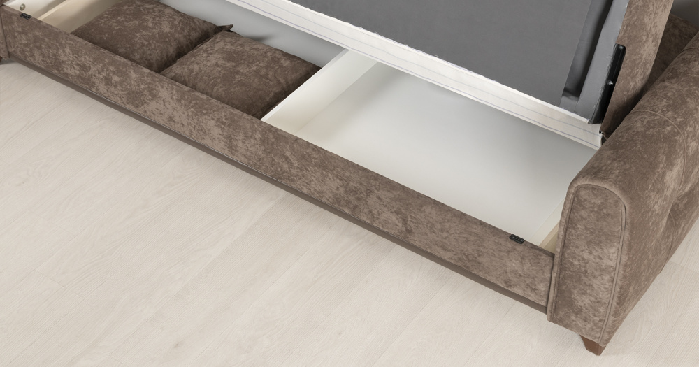 Выполнен в модном мягком велюре ROMANCE оригинальной фактуры. Ткань легко чистится, устойчива к зацепам, обладает повышенной износостойкостью. Благодаря особой технологии гладкого крашения Frozen Flower на поверхности ткани присутствует легкий краш–эффект, подчеркивающий невероятно мягкую фактуру ткани.
