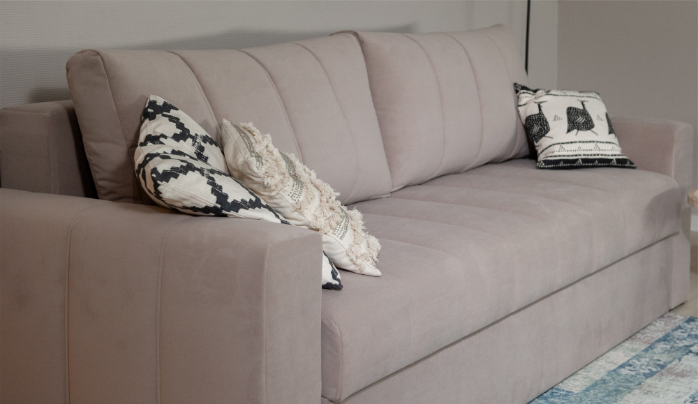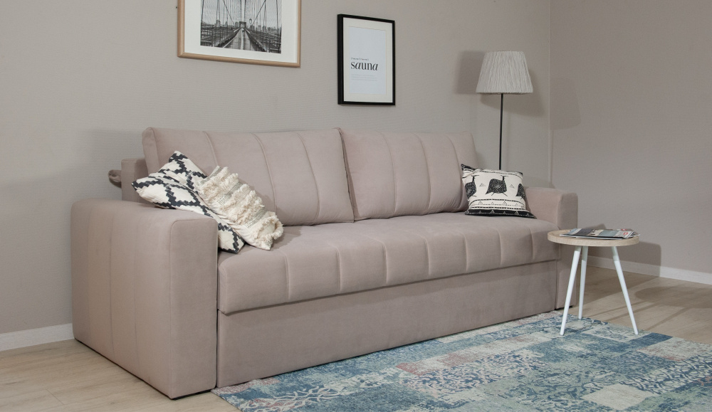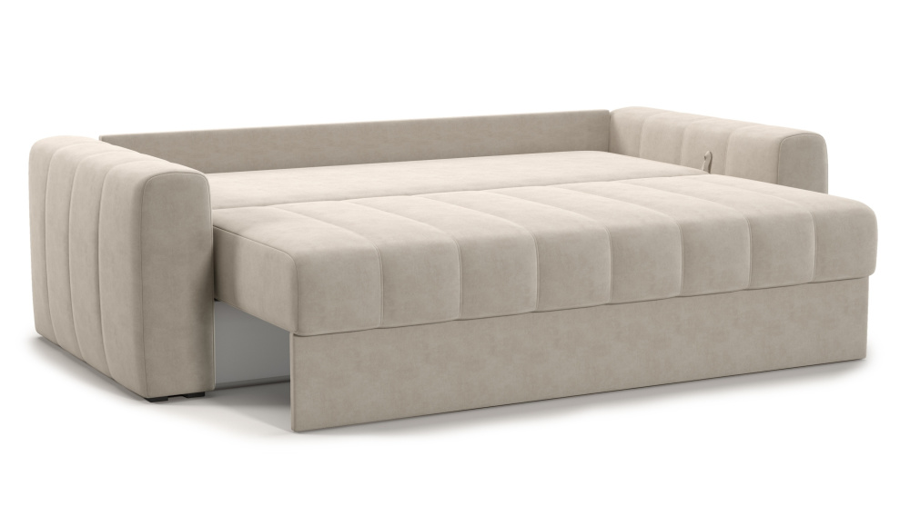 Современный диван "Порту" станет универсальным дополнением к интерьеру любого размера и стиля. Элегантная двойная вертикальная отстрочка и мягкие боковины акцентируют привлекательные линии модели, а обивка в натуральных цветах поможет создать дома уютную и спокойную атмосферу. Диван легко раскладывается в полноценное спальное место благодаря ортопедическому матрасу на независимом пружинном блоке, обеспечивая идеальную поддержку во время сна. Просторный бельевой ящик предоставляет большое пространство для хранения постельных и текстильных аксессуаров, делая "Порту" не только стильным, но и функциональным выбором для вашего дома.