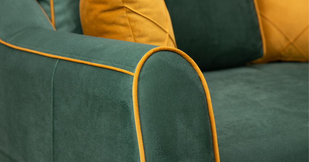 Декоративный кант, пуговицы, отстрочка, утяжки на подушке и подлокотниках