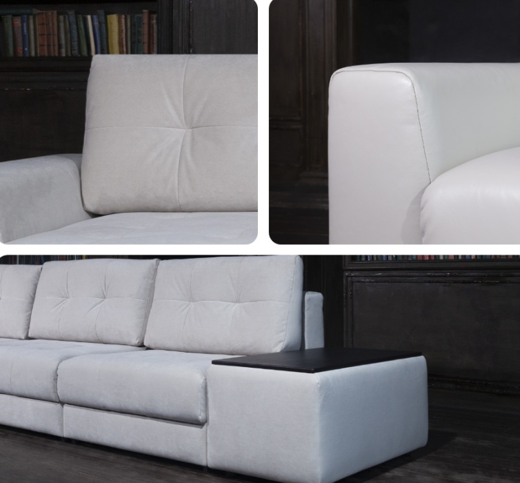 Лаконичный линейный дизайн компенсируется изысканностью кроя и наличием элегантных утяжек на сиденьях и спинках. Подлокотник с внутренней стороны слегка отогнут, что добавляет ему шарм.