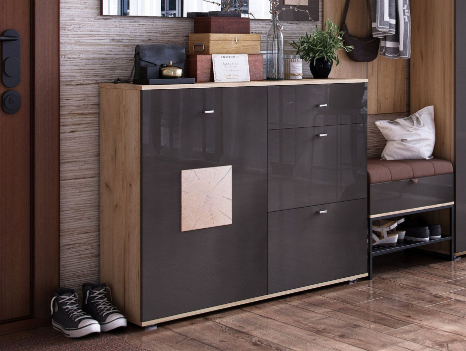 Фасады: ЛДСП 16 мм, цвет «Антрацит» лак, глянец.