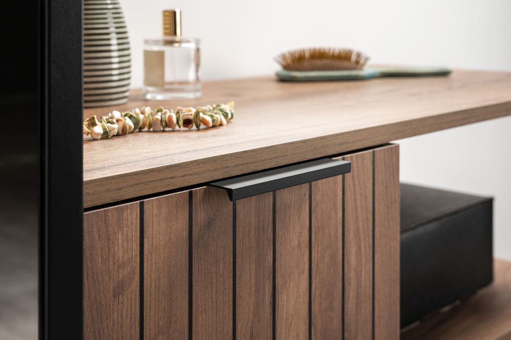 Выдвижная усиленная штанга в шкафу обеспечивает компактное хранение верхней одежды. Направляющие и петли оснащены доводчиками.