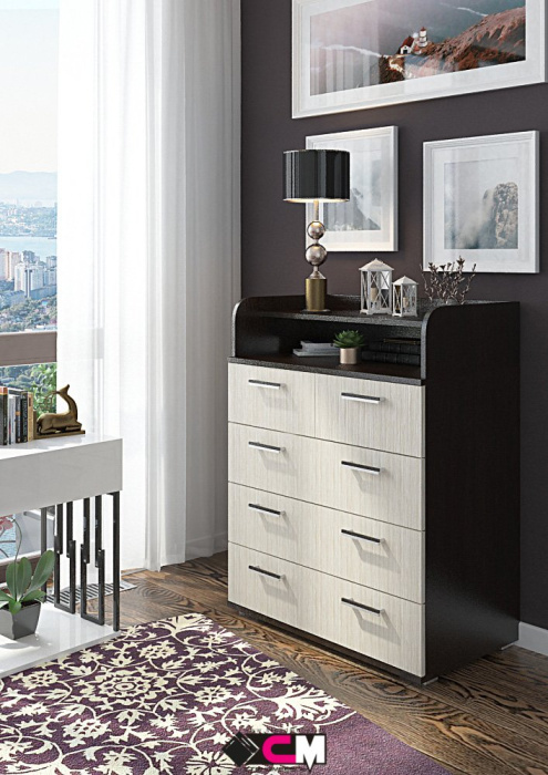 Комод №1 станет гармоничным дополнением интерьера любой комнаты. Пять достаточно вместительных выдвижных ящиков пригодятся для хранения одежды, постельного и нижнего белья, различных аксессуаров, косметики и украшений. Сверху на комоде можно разместить интересные книги, семейные фотографии, вазу или вазон с цветами, статуэтки и другие предметы декора.