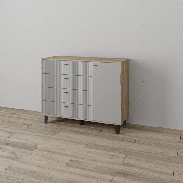 • Комод с двумя секциями: отделение с распашным фасадом и выдвижными ящиками