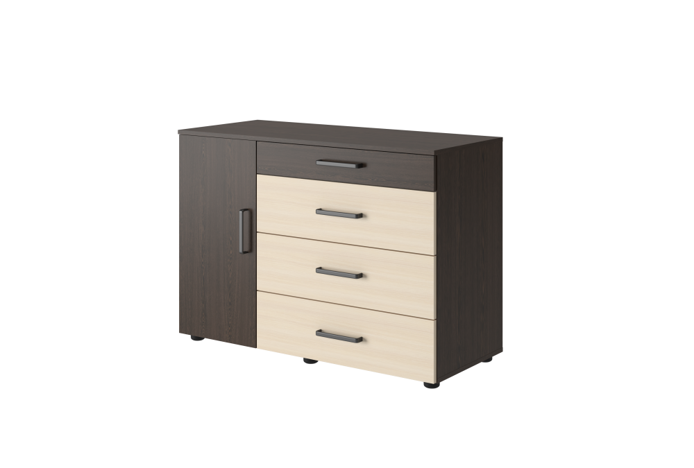 Модификация комода Вега К-02 отличается расширенным функционалом. В конструкцию комода была добавлена закрытая секция с полкой, которая делит секцию на два отсека для хранения вещей.