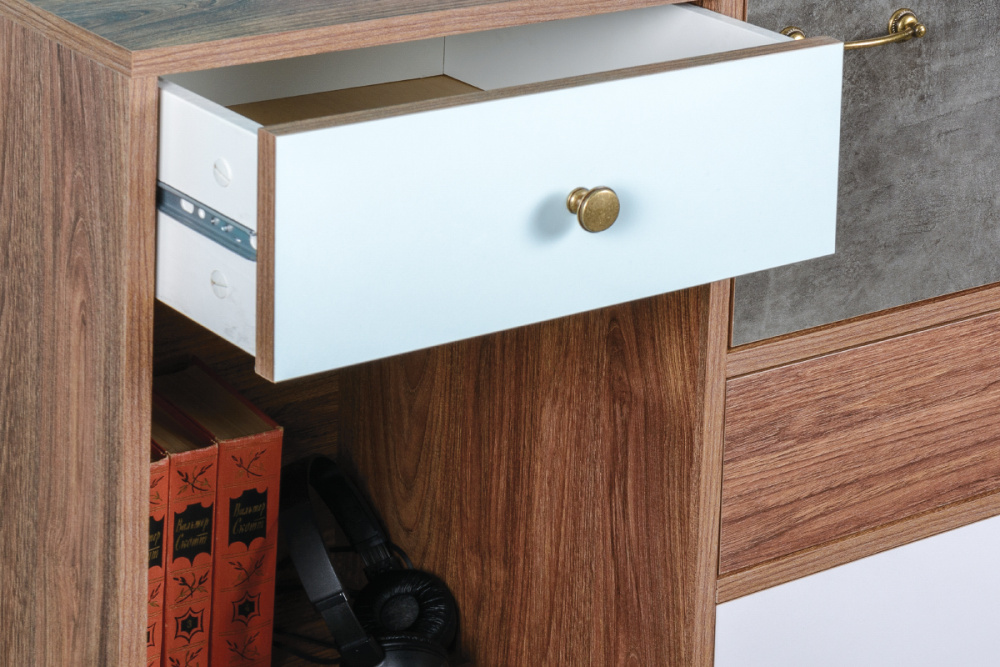 Комод Вайс сочетает в себе нежные, тёплые цвета и строгие геометрические формы. Станет ярким дополнением для любого пространства.