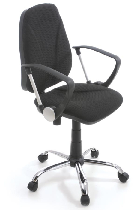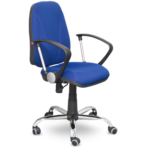 Спинка и сидение выполнены из поролона увеличенной толщины (40 мм). Материал обивки - TW ткань. Высота стула регулируется пневматическим устройством «газ-лифт», накрытым телескопическим пластиковым чехлом. Кресло укомплектовано хромированной крестовиной диаметром 640 мм, подлокотниками «Нептун» и пластиковыми роликами.