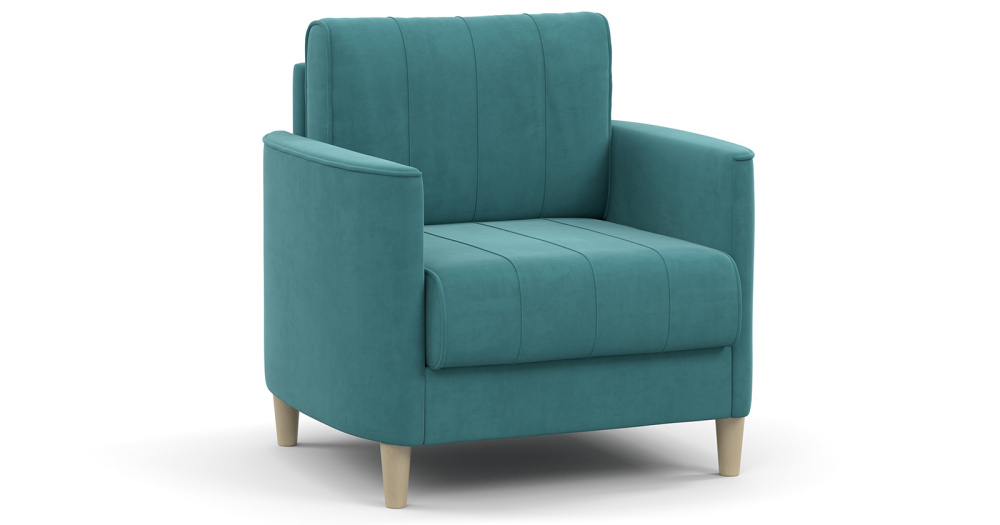 Комплект состоит из прямого и углового диванов, кресла для отдыха и пуфа.