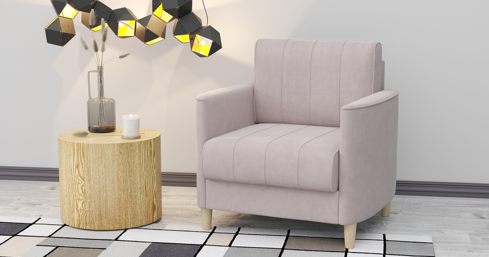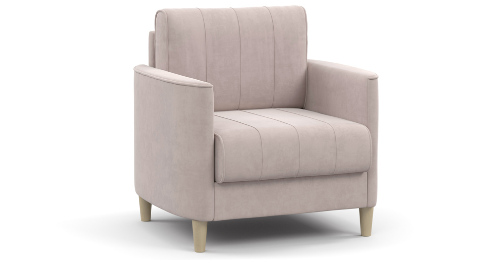 Комплект состоит из прямого и углового диванов, кресла для отдыха и пуфа.
