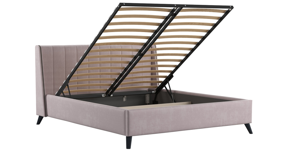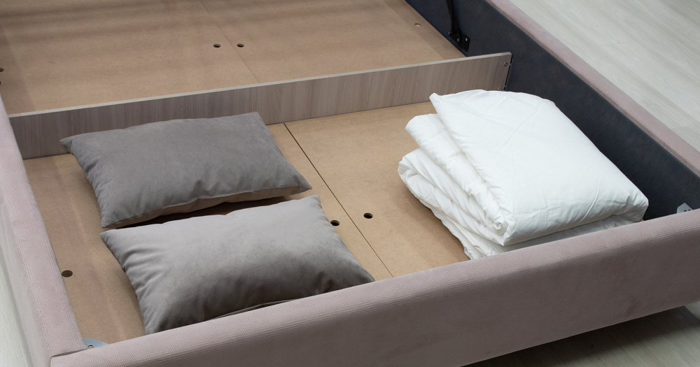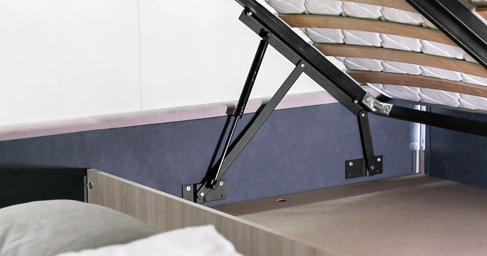 Жесткое кроватное дно из МДФ 10 мм. Задняя стенка изголовья выполнена в тех. ткани (спанбонд).