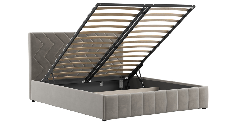 Жесткое кроватное дно из ЛДСП 16 мм. Задняя стенка изголовья выполнена в тех. ткани (спанбонд).