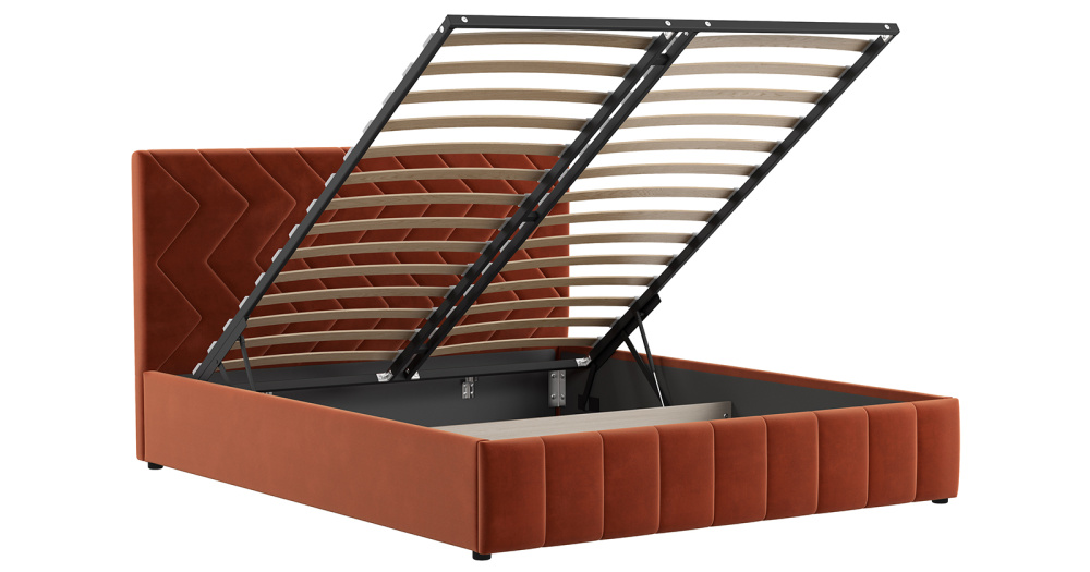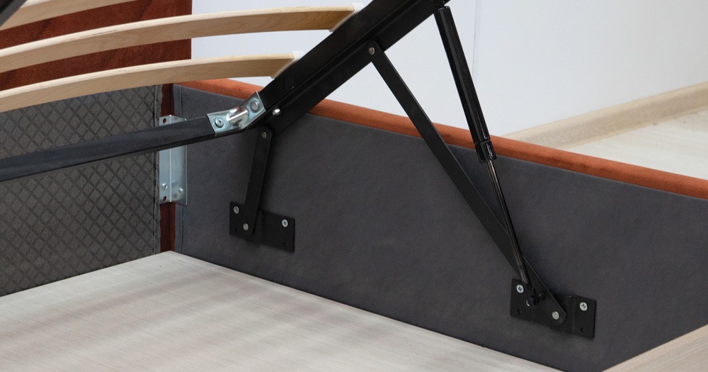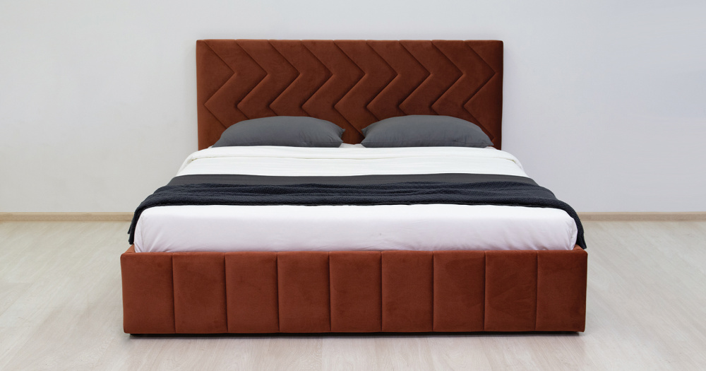 Жесткое кроватное дно из ЛДСП 16 мм. Задняя стенка изголовья выполнена в тех. ткани (спанбонд).