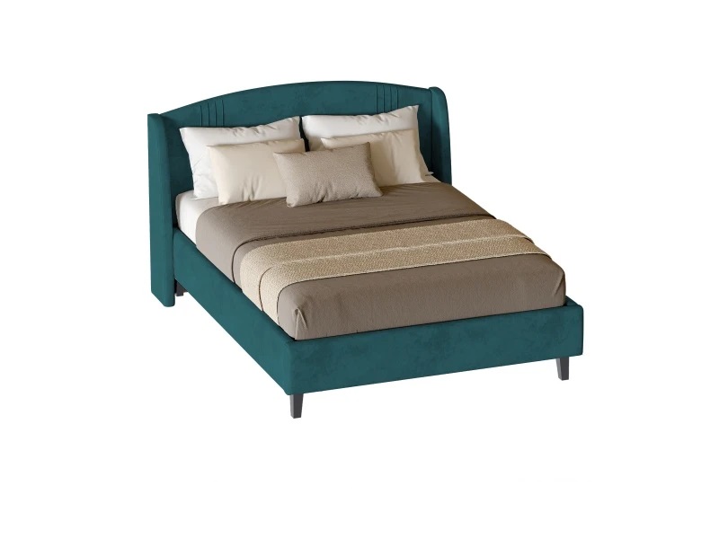 Каркас кровати обит мягким и приятным на ощупь велюром, который хорошо держит форму, устойчив к механическим воздействиям (в том числе к зацепкам от когтей животных), гипоаллергенен.