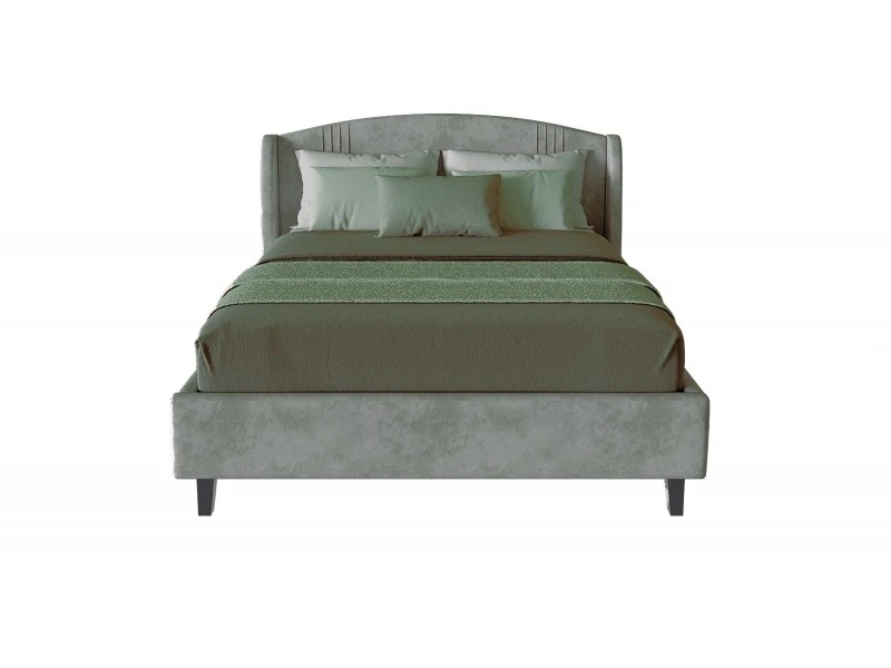 Каркас кровати обит мягким и приятным на ощупь велюром, который хорошо держит форму, устойчив к механическим воздействиям (в том числе к зацепкам от когтей животных), гипоаллергенен.