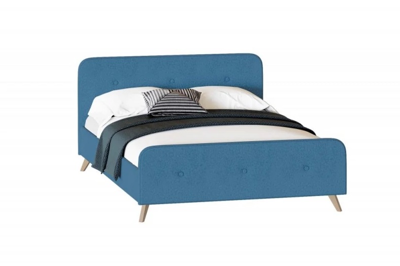 Изголовье имеет закругленный силуэт, обтянут велюровой тканью с пуговицами, что обеспечивает дополнительную мягкость и уют. Высокие стильные ножки из массива березы создадут ощущение легкости и воздушности.