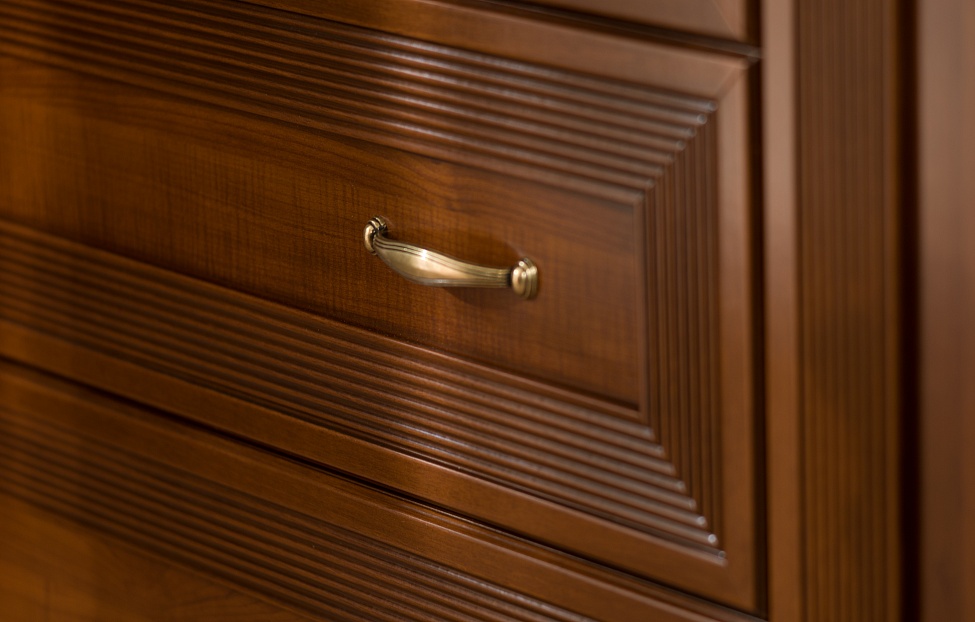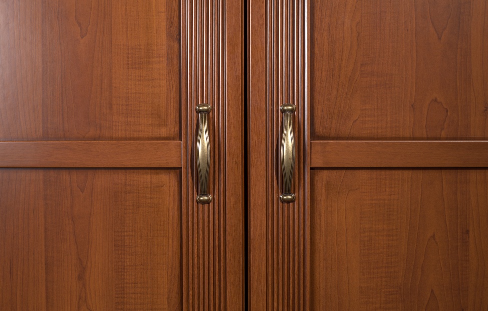 Композиция №2 очаровывает своими простыми формами и изящностью исполнения. Лицевая фурнитура цвета античного золота подчеркнет благородство и респектабельность коллекции, изысканный туалетный столик понравится модницам, которые любят ухаживать за собой, а удобный и вместительный шкаф за счет различных вариантов наполнения позволит создать идеальное место для хранения.