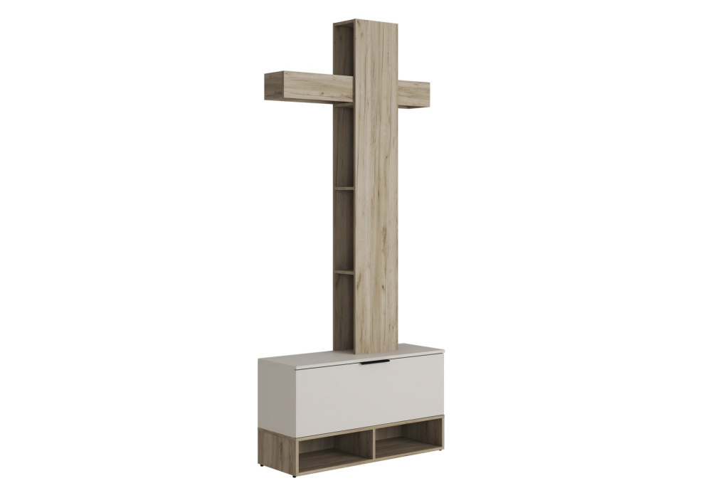 Над верхней полкой находится вешалка с закрепленными на ней крючками. Вешалка Д.1000 х В.138 х Г.186 мм.