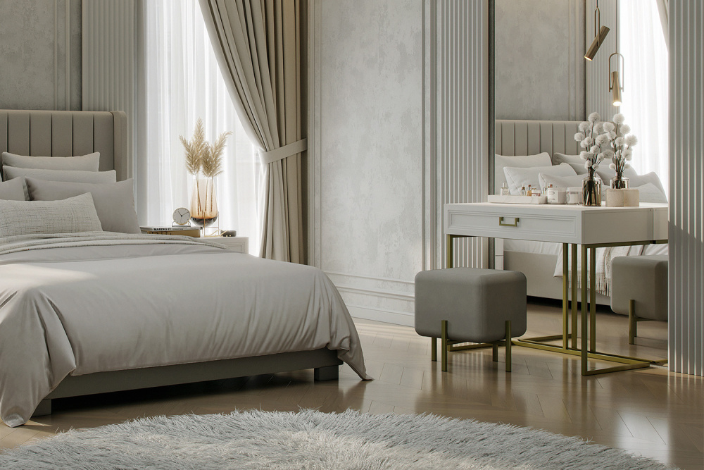 Спальня Дольче выполнена в стиле эклектики, а также соединяет в себе стиль ар-деко в современном прочтении и минимализм. К строгим формам и безупречной геометрии добавлена гладкая текстура, позволяющая смягчить декор и подарить коллекции шлейф тонкой роскоши с золотыми вставками;