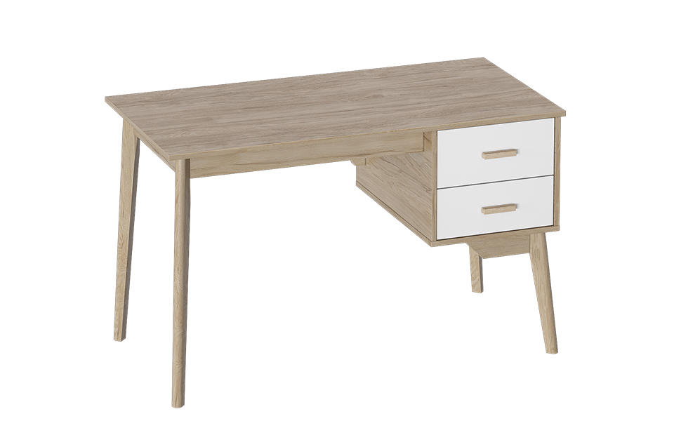 Письменный стол с тумбой "Калгари" прекрасно дополнит гостиную "Калгари''в скандинавском стиле. Под столешницей расположены два ящика на шариковых направляющих.