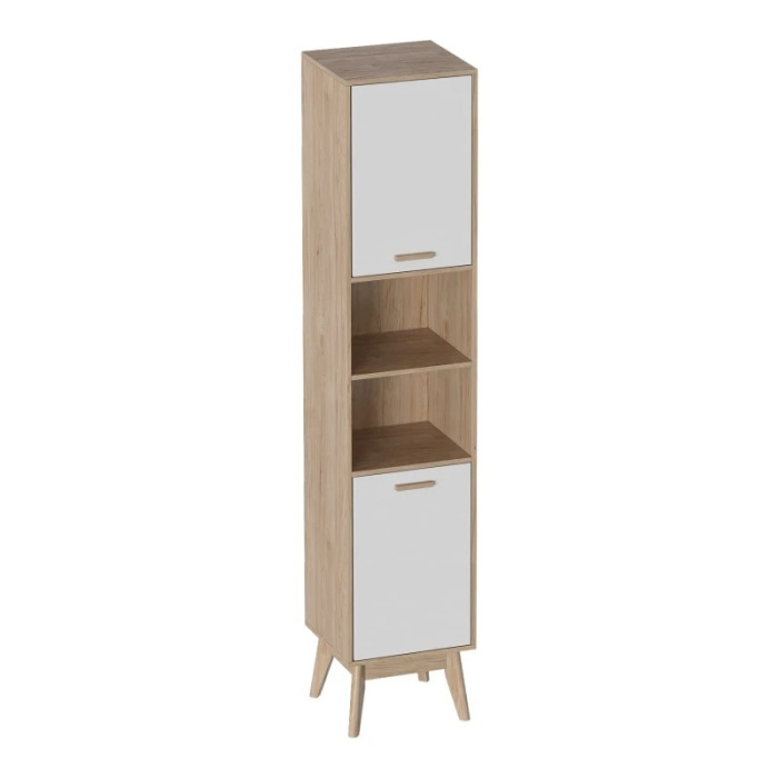 Стеллаж состоит из нескольких полок, которые могут быть использованы для хранения книг, документов, фотографий и других предметов. Оснащен вкладными боками соединенные полками, разделен на три отделения: верхнее и нижнее закрыто дверями, а в центре расположена открытая полка.