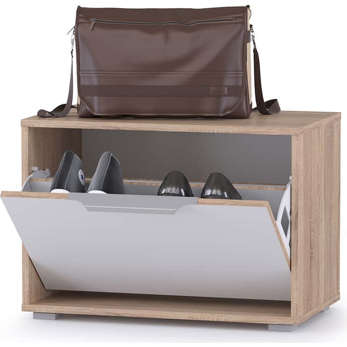 Обувница Куба — компактный вариант для небольшой прихожей. Светлые тона модели позволят сделать интерьер визуально более легким и просторным.