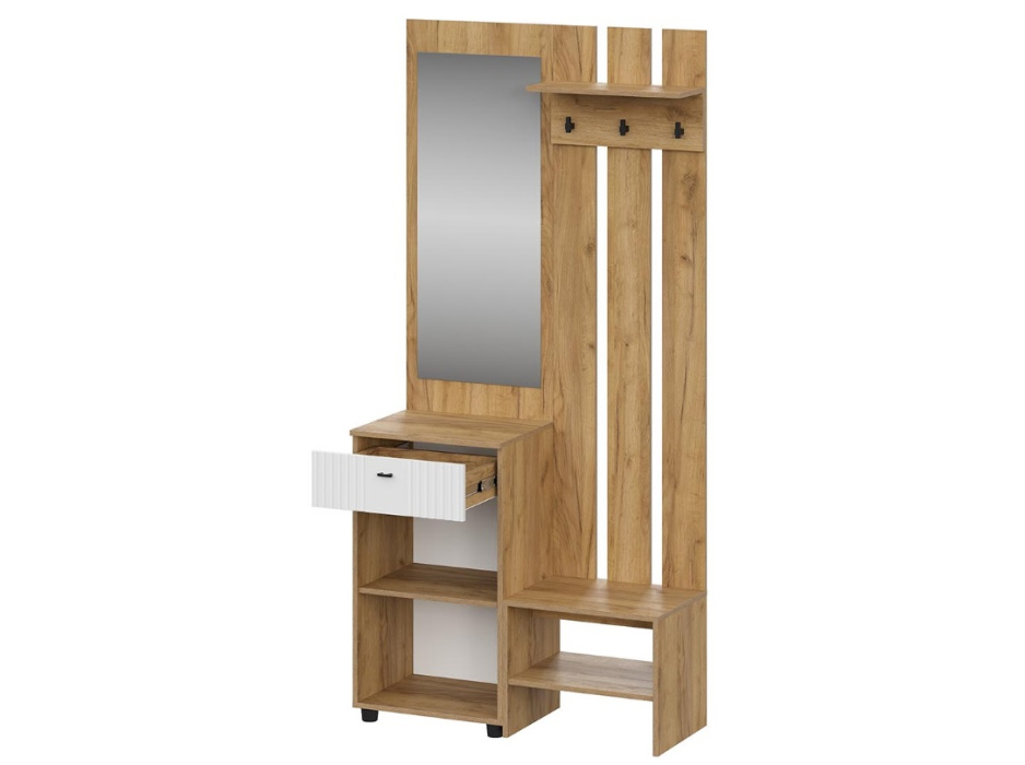 Модульная прихожая «Милан» — это идеальный вариант для тех, кто ищет удобную и стильную прихожую. Она выполнена из высококачественного ЛДСП цвета Дуб Золотой и Белого Матового МДФ, что обеспечивает долговечность и прочность конструкции. Фасады прихожей украшены качественной фрезеровкой, которая делает её ещё более элегантной и изысканной.
